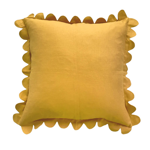 高品质刺绣扇贝边缘枕套沙洗法国亚麻方形高脚椅豪华褶边靠垫套