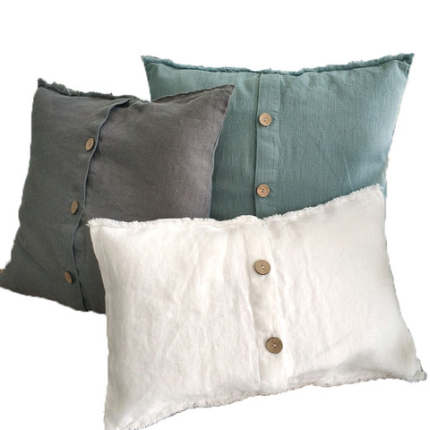 2 pcs套装天然100% 亚麻编织面料亚麻靠垫套大号现代亚麻枕套带纽扣定制