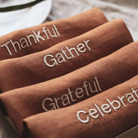 纯色褶边亚麻餐巾纸刺绣字母组合棉麻餐巾纸有机织物餐巾纸婚礼餐垫